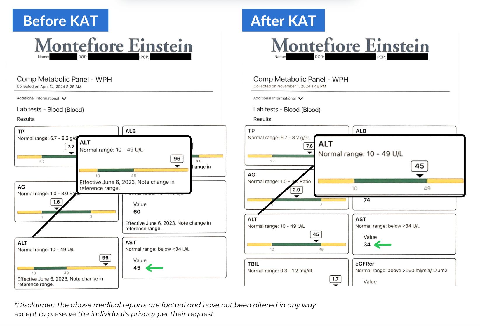 Don't forget that life is a marathon not a race. The absolute worst thing you can do to yourself psychologically speaking is to compare yourself to others, particularly in the realm of genetics. Everyone is different, and some are predisposed to having better or lesser health than others, whether it be hereditary, environmental or from old age. Regardless of where you fall on this spectrum, the good news is that modern medical science has revolutionized ways to help the body achieve better health through natural supplementation, as in the case of KAT and GIA. The speed at which results can be achieved when taking KAT and GIA regularly as recommended is dependent on one main factor, your current state of liver health, which is affected by your age, diet, lifestyle and environment. The following is an abbreviated list of factors that negatively impact liver health and slow down results: poor diet (fast food, high fat, sugar), obesity, lack of sleep, stress, alcohol, caffeine, soda, energy drinks, high fructose corn syrup, medications (oral, topical, intravenous), birth control, supplements (pre-workouts, etc), recreational drugs, heavy metals, environmental factors, genetic predispositions, illnesses, etc.